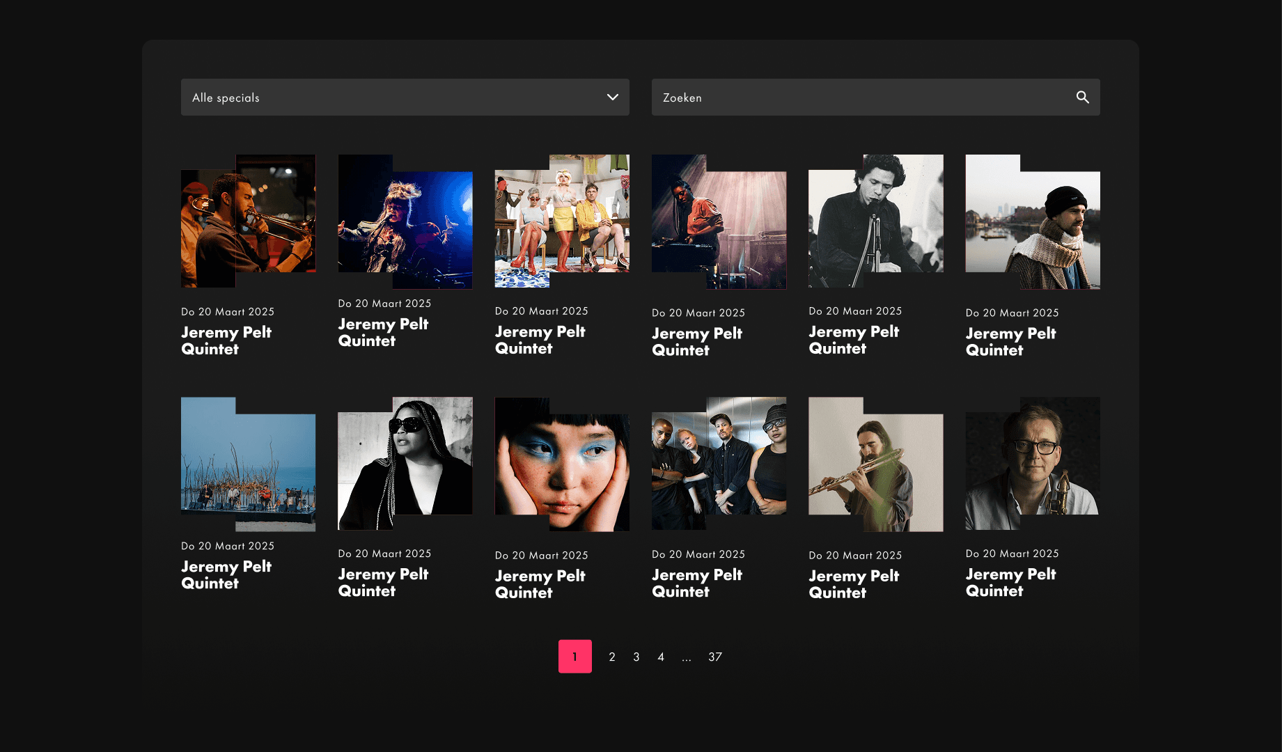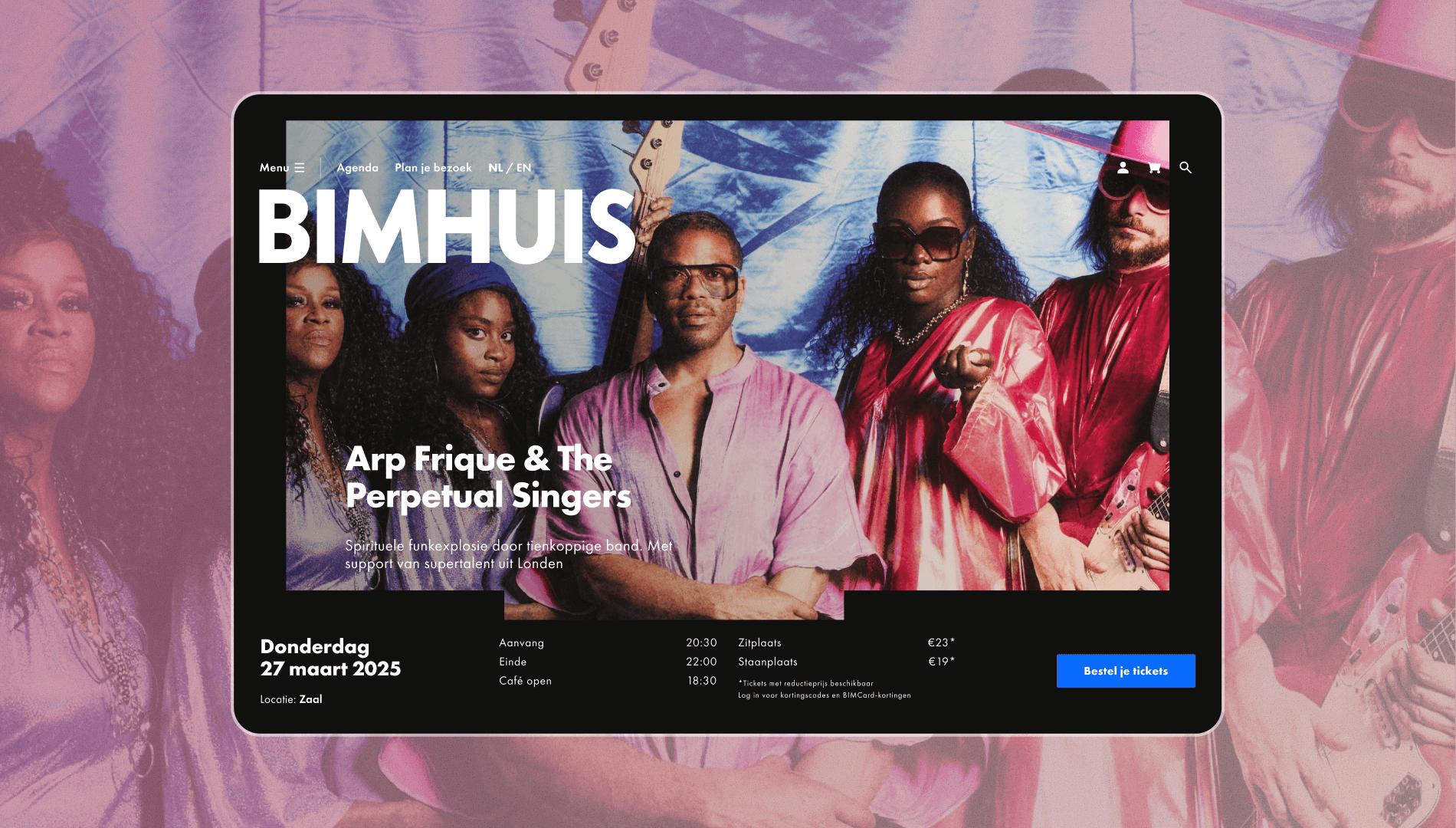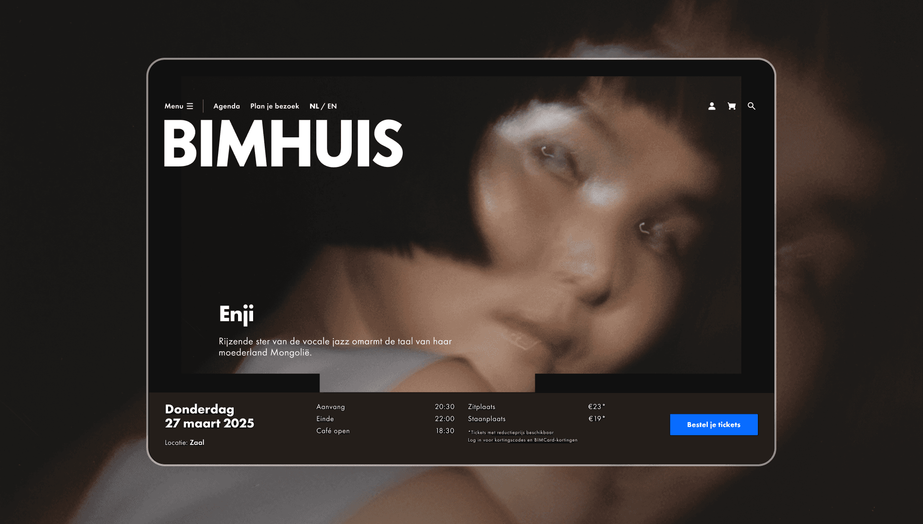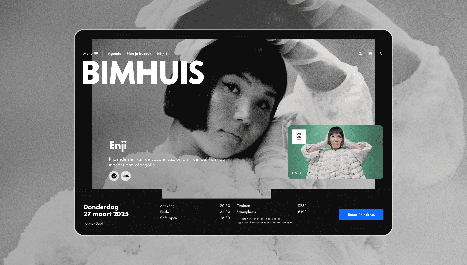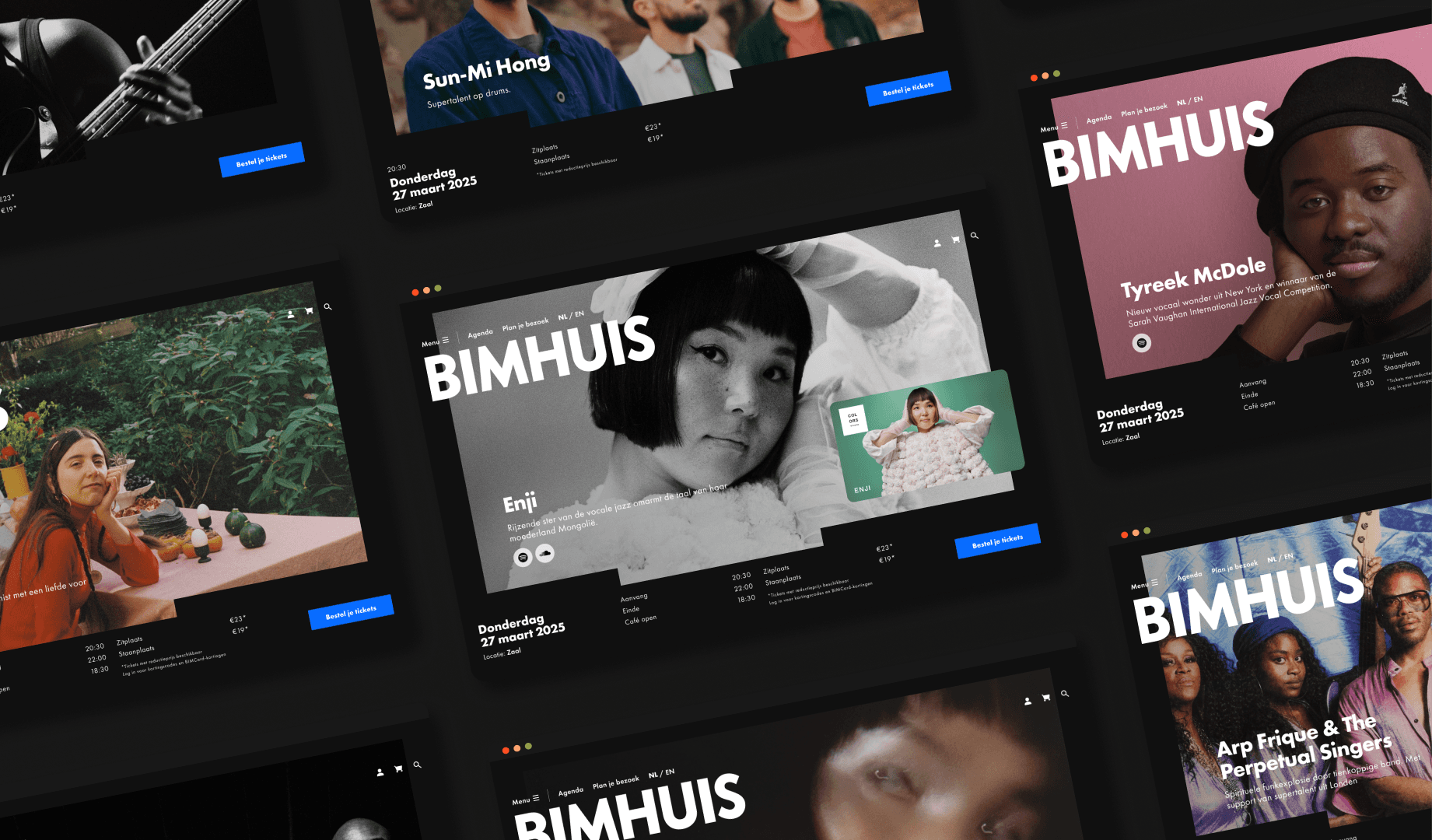 Every artist who performs at BIMHUIS brings their own story, mood, and sound. The idea was to give each artist their own little world within the site. By combining bold photography with large, expressive typography, each detail page becomes an individual experience, an extension of the artist’s performance.